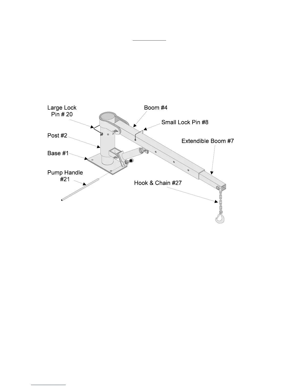 locking the EXTENDIBLE BOOM (#7) in place using its SMALL LOCK PIN (#8). Do