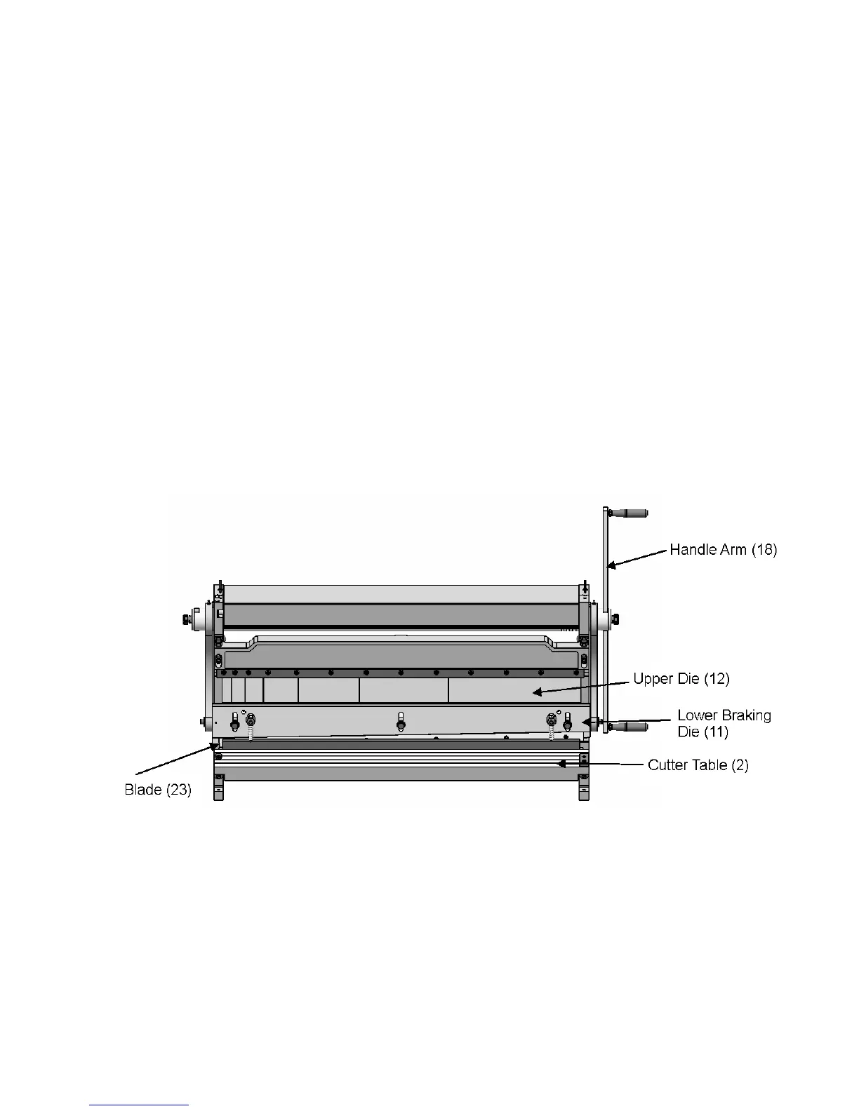 1. Raise the Lower Braking Die (11) to its highest level by rotating the Handle Arm (18).