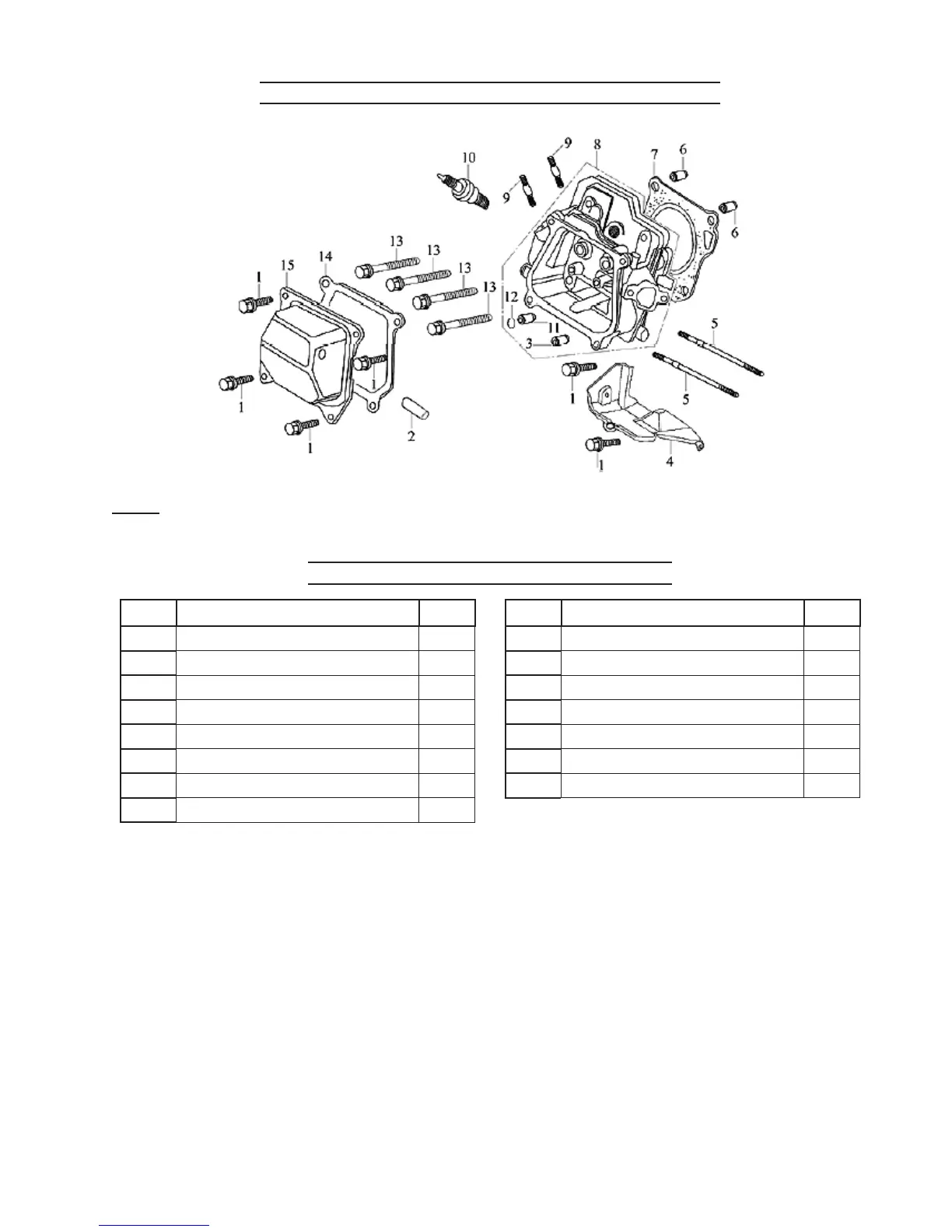 Cylinder Head and Cover Parts List