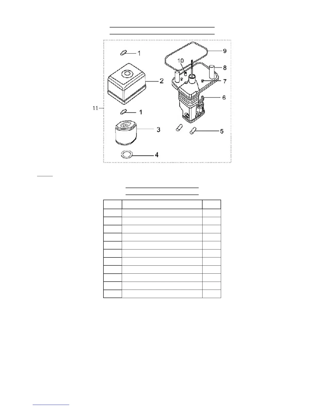 Air Cleaner Parts List