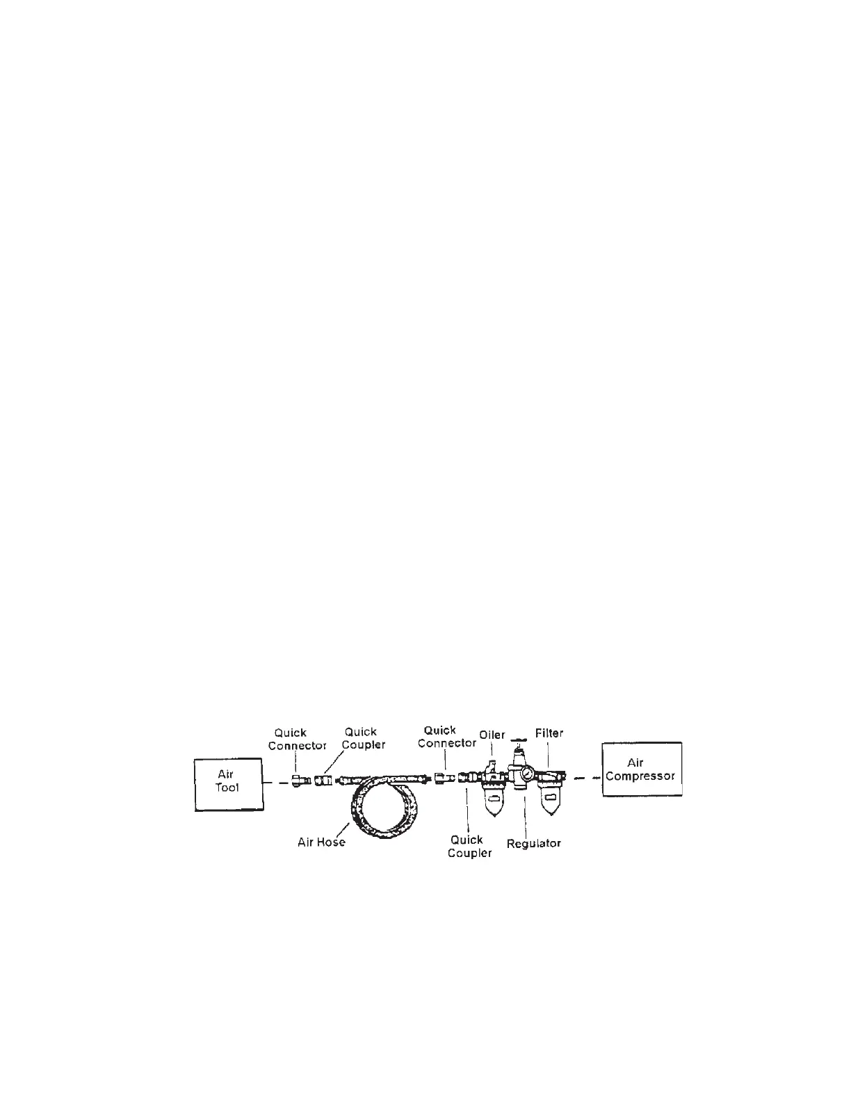 3. Connect the air tool, air hoses, filter, and oiler to the Compressor Air Output as
