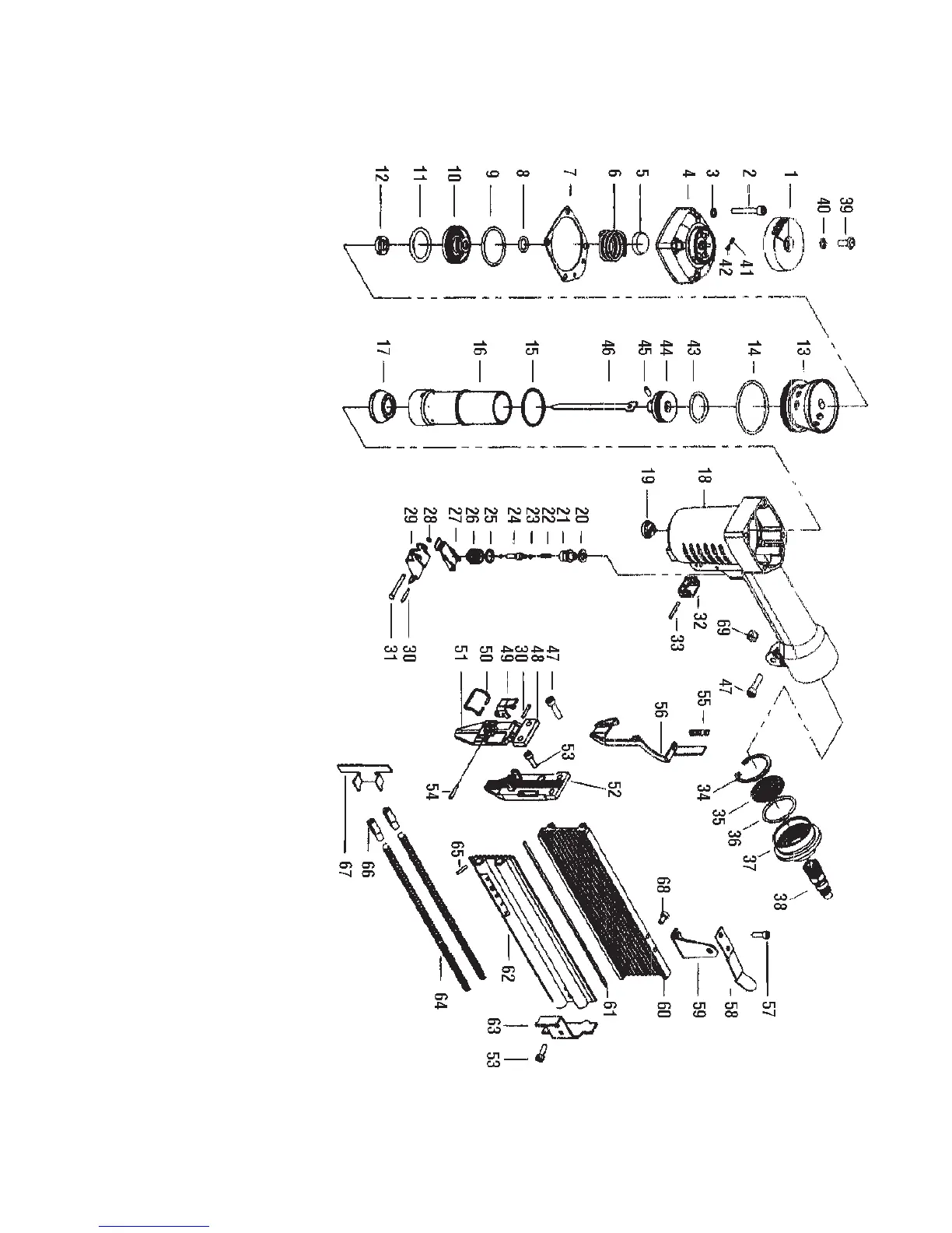 Warning! Always disconnect the tool from the air compressor and then empty the magazine of nails before attempting to inspect