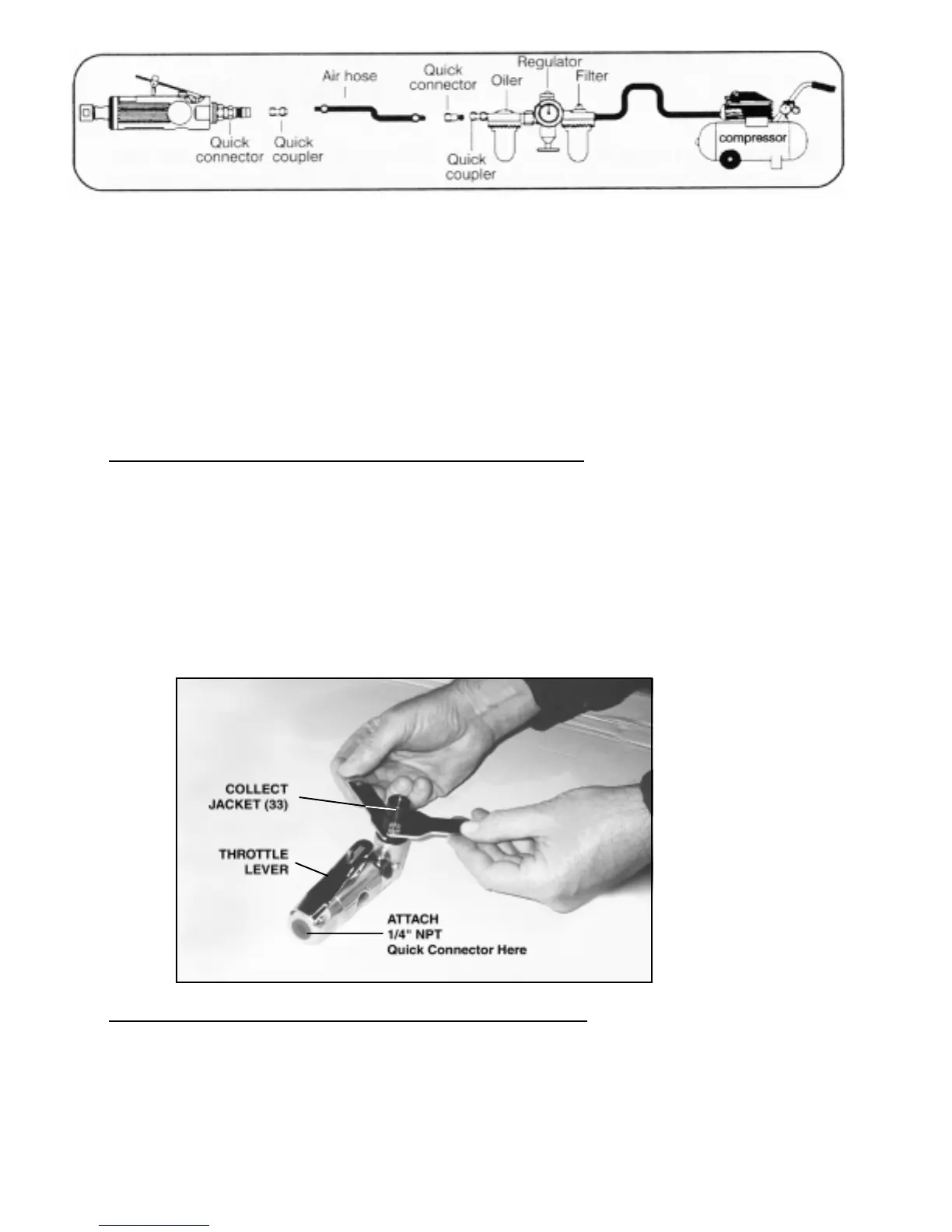 1. The Air Angle Die Grinder requires the attachment of a 1/4” NPT Quick Connector (available