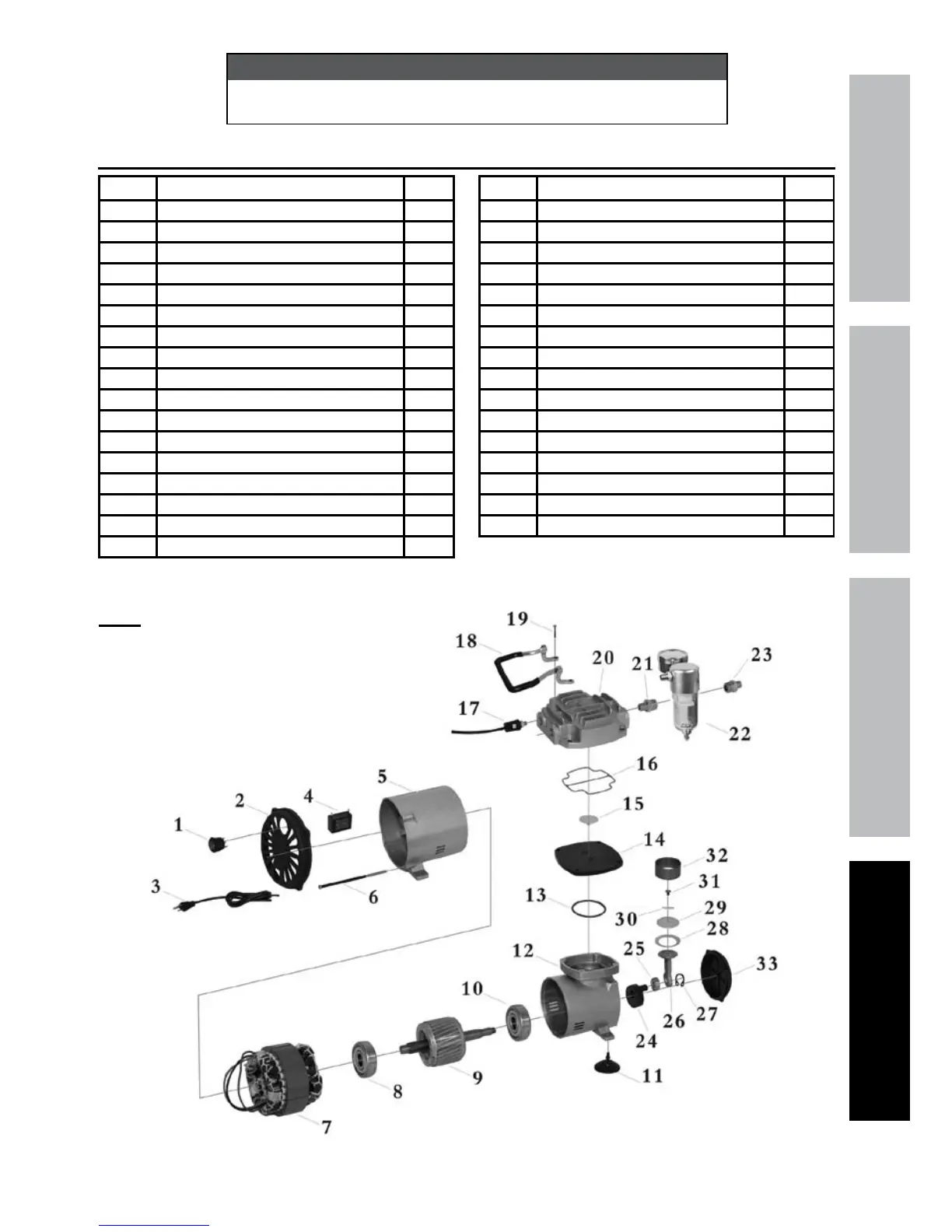 Compressor Parts List and Assembly Diagram