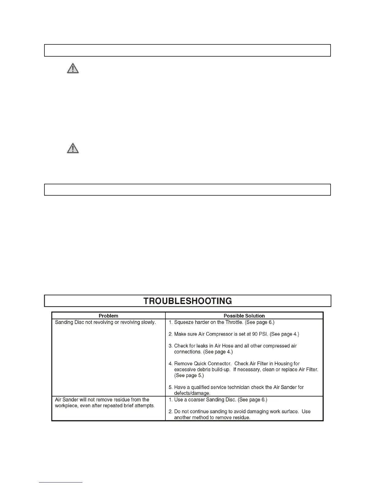squeeze the Throttle (2) again to release any compressed air in the Air Sander.