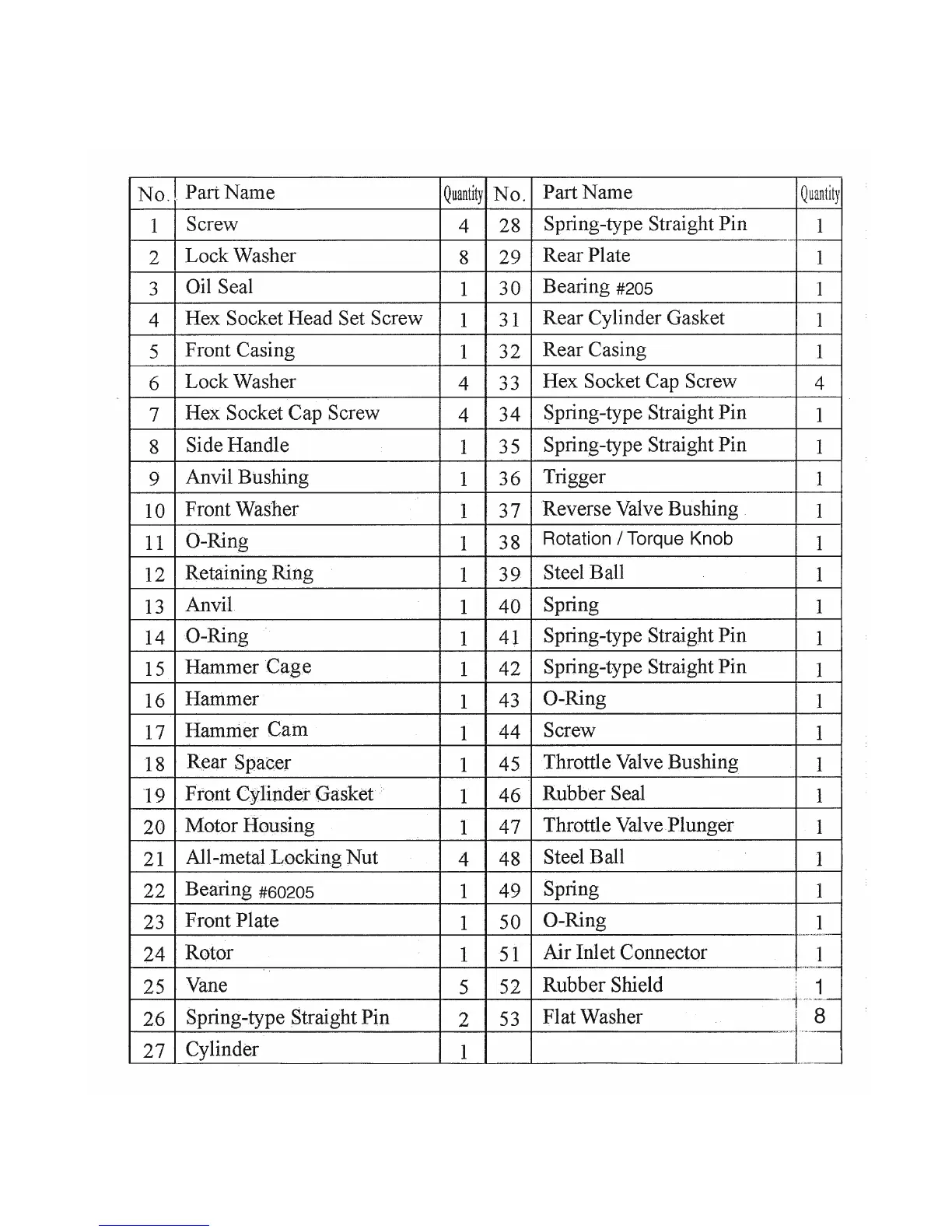 Central Pneumatic 94109 - Parts List