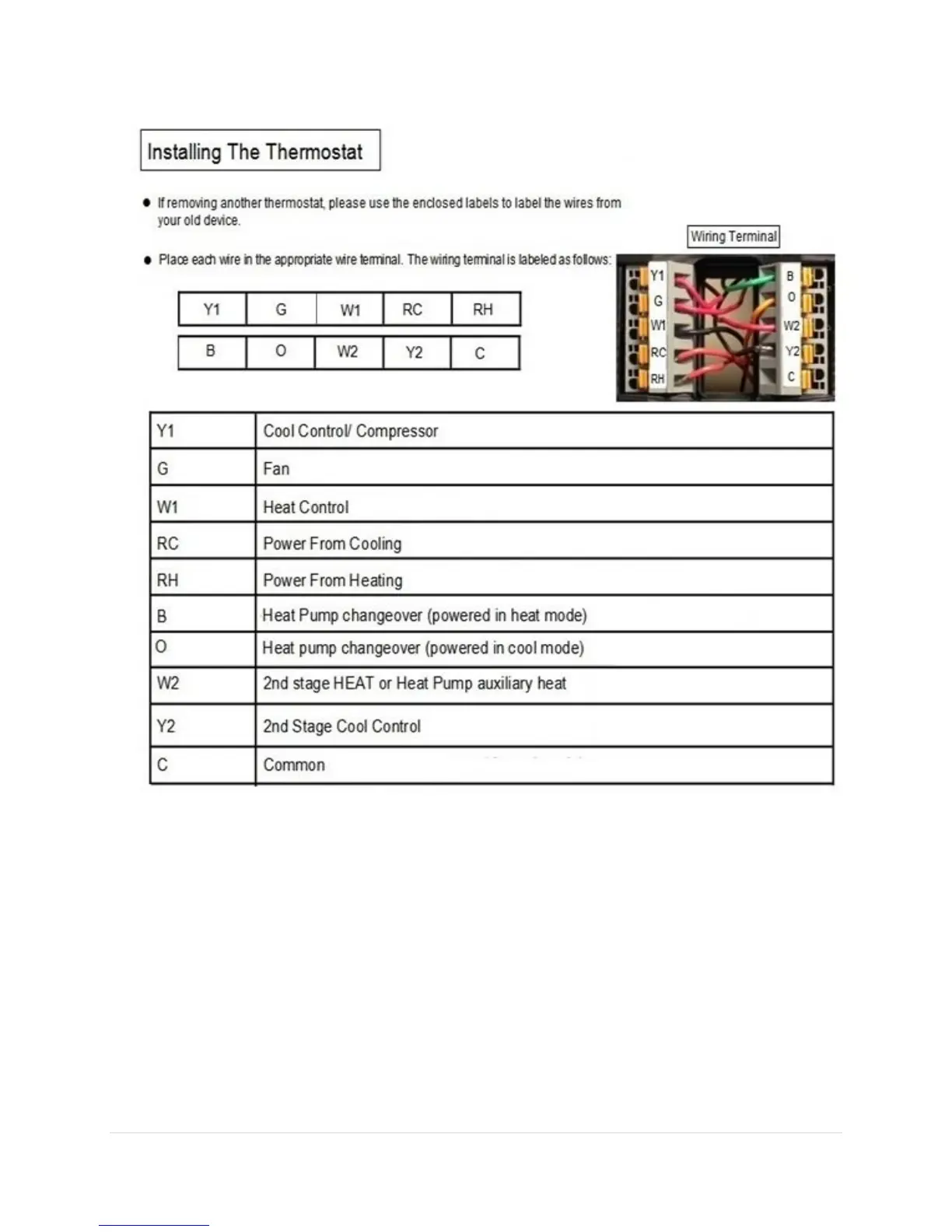 Centralite 3157100 - Installing The Thermostat; Wiring Terminal Guide; Wire Connections