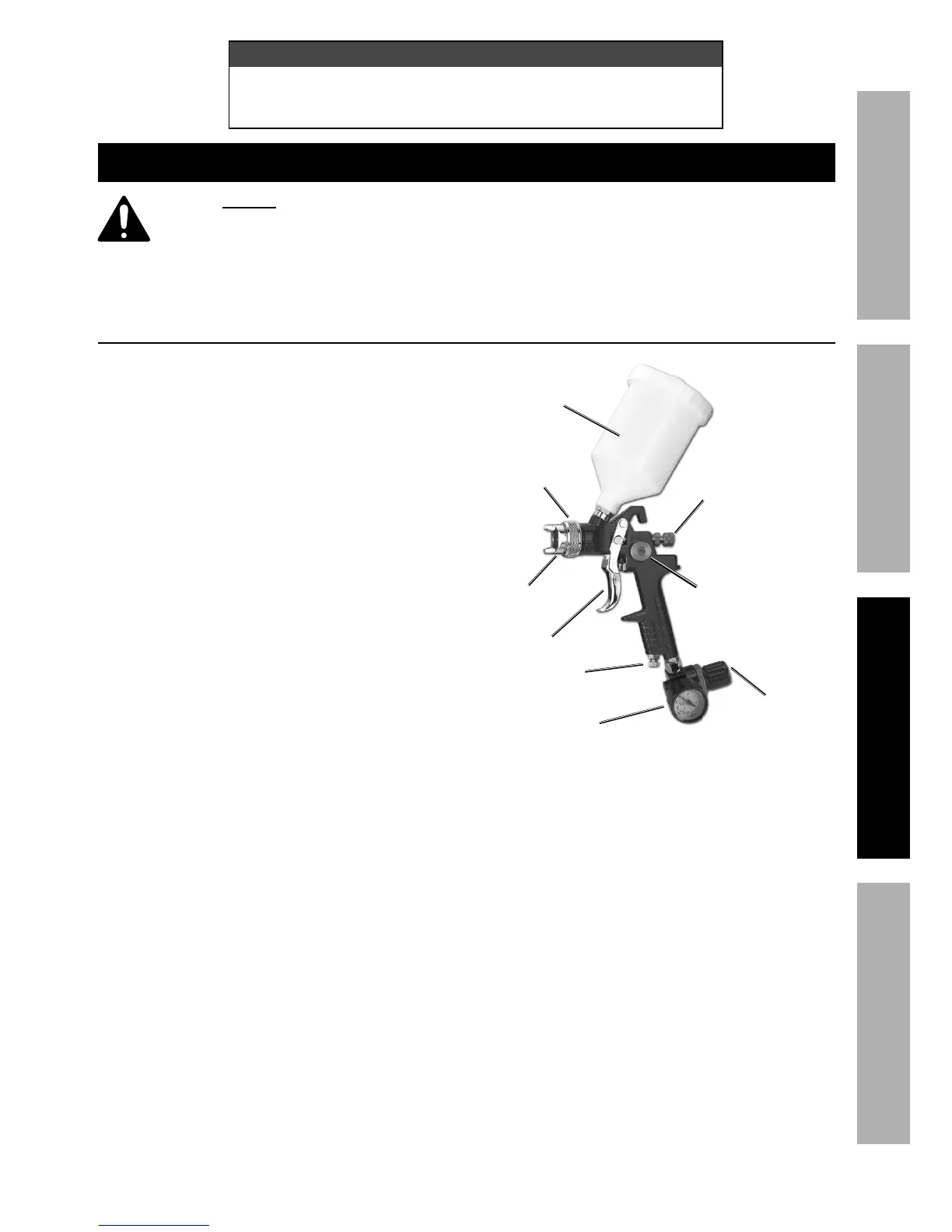 Delayed or inadequate cleaning will permanently clog the Spray Gun.