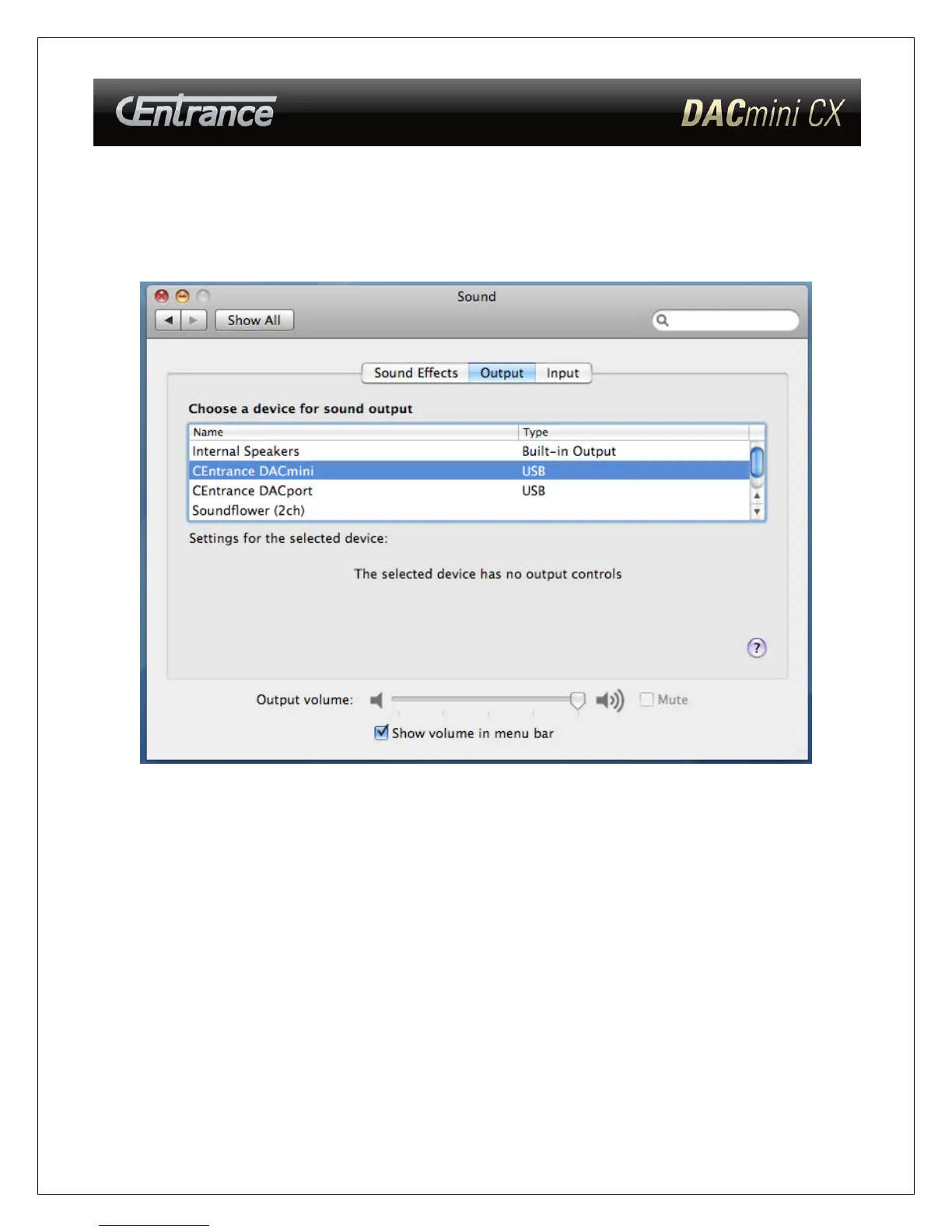 3) Select “DACmini” from the Sounds Menu and you are ready to listen