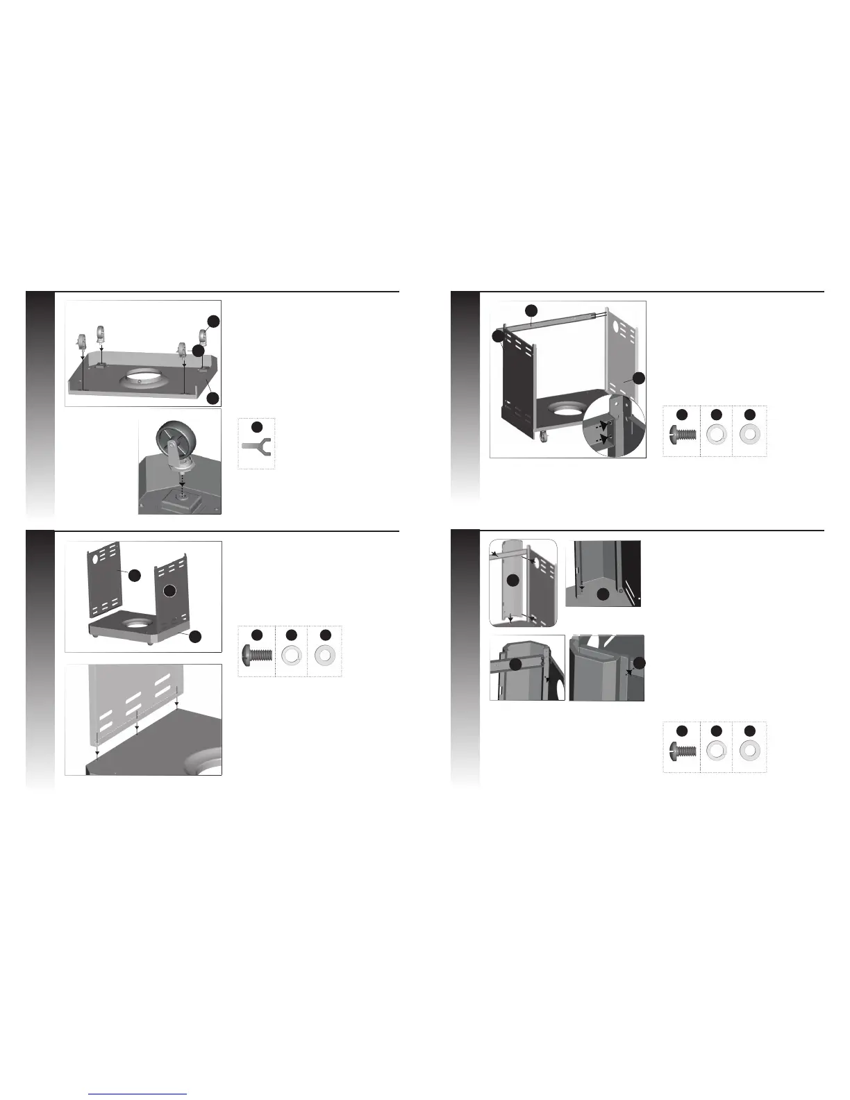To secure the 4 wheels, hand tighten rst. Then,