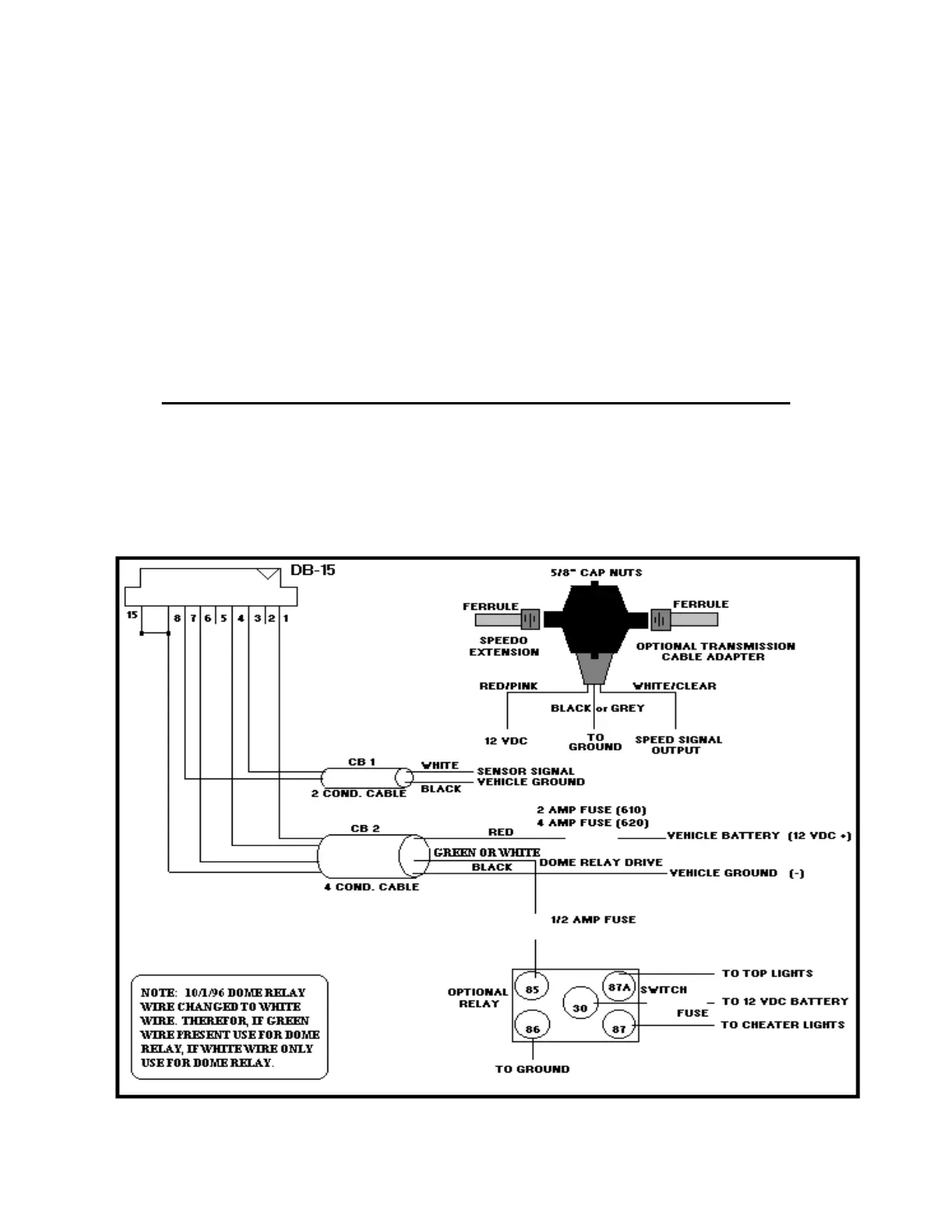 White wire, CB 1 - Connect to white wire of Centrodyne transducer. For electronic vehicle speed sensors,