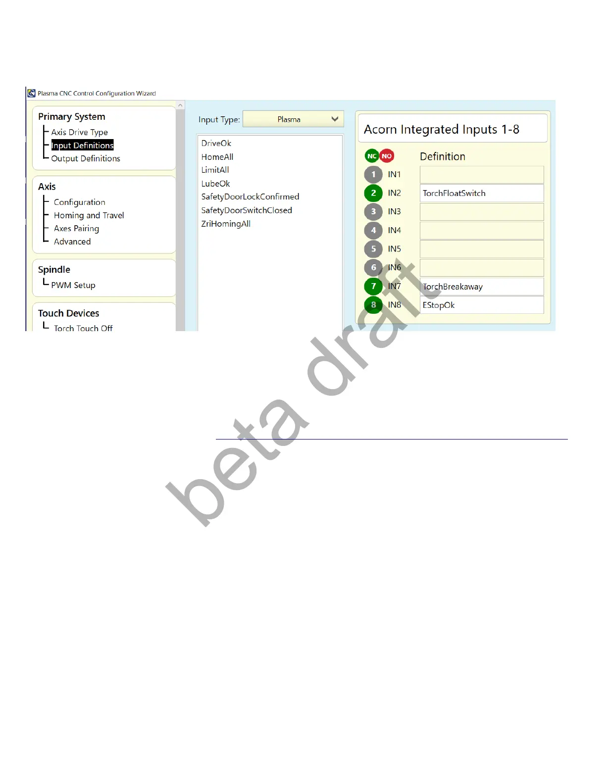 The “TorchFloatSwitch” input is also monitored by CNC12 when not running a touch off cycle so that it also