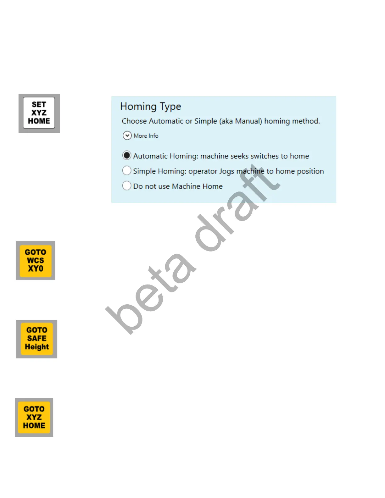 used on the machine. Set homing type in the Wizard Homing and Travel Menu.
