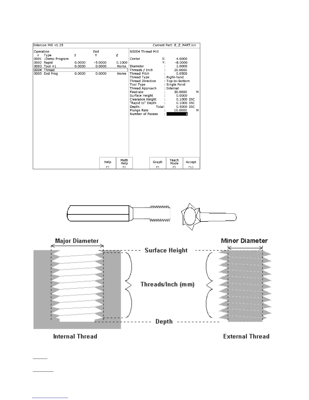 When you press F8 - Thread from the canned cycle menu, the following screen is displayed: