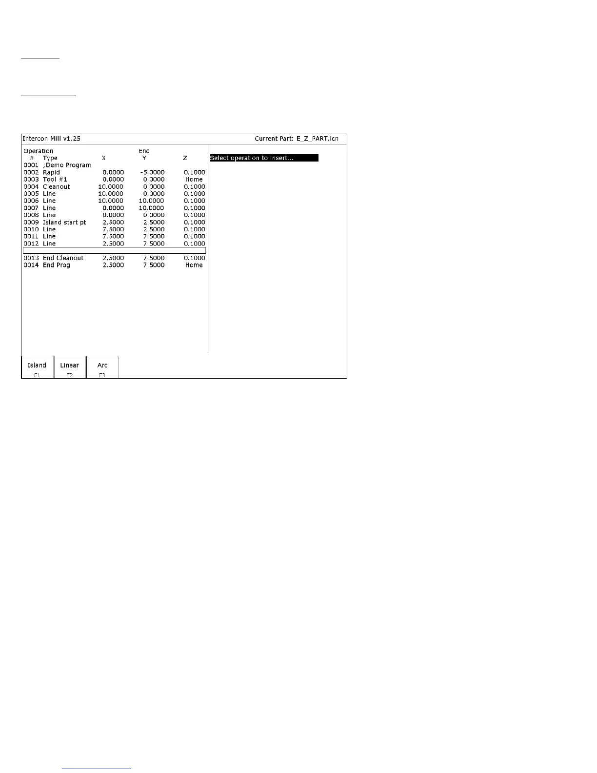 of lines and arcs by choosing the F2-Linear and F3-Arc options in the cleanout cycle.