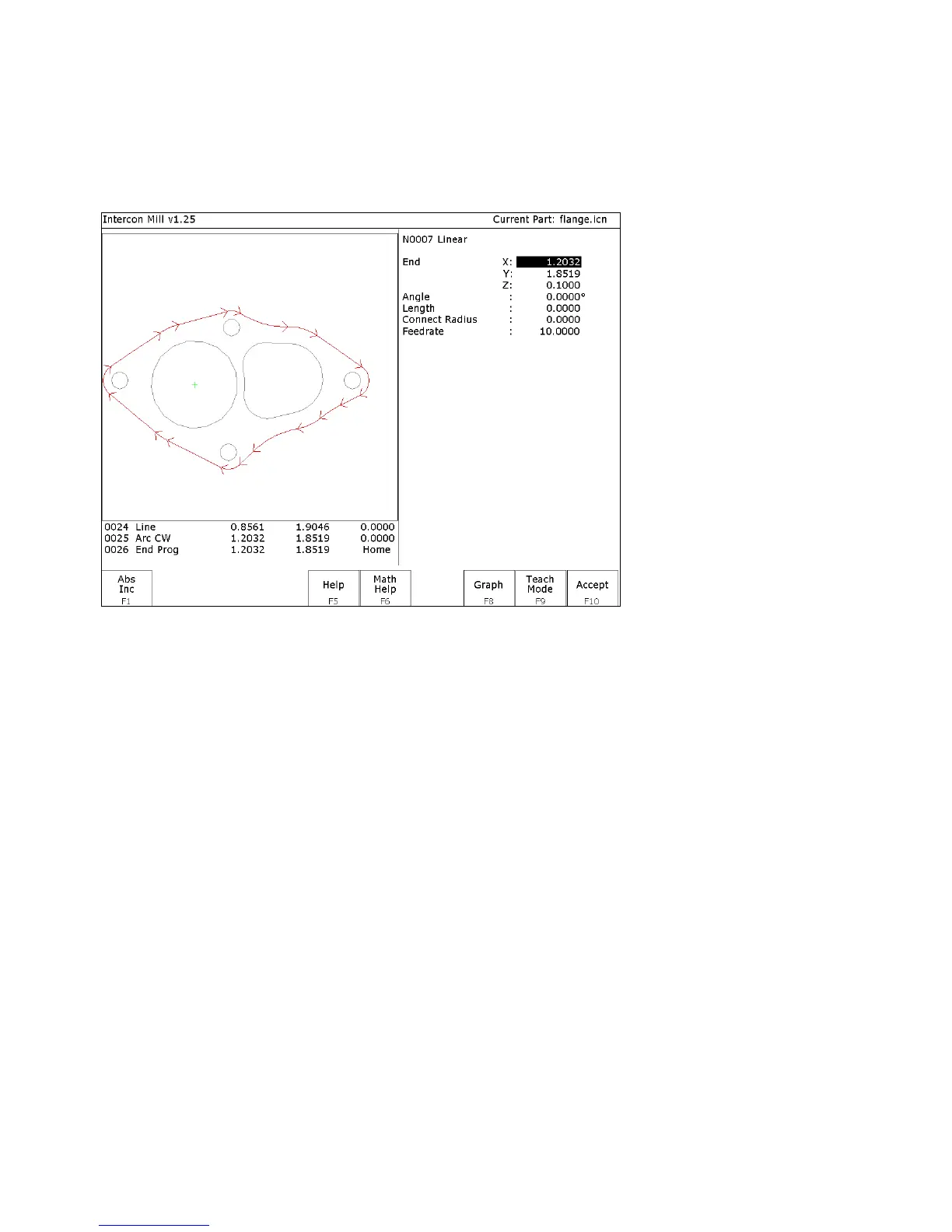 F10 – Done Accepts the selected chain and proceeds to the Intercon operation edit menu. The operation edit menu