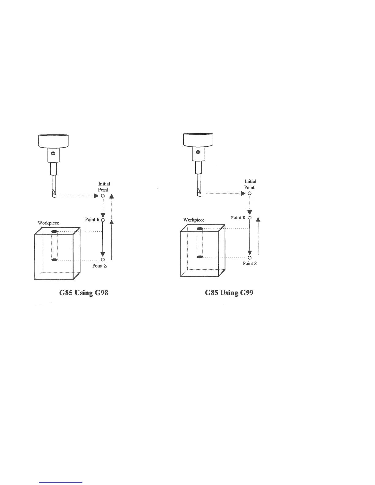 G85 is similar to G81, except that the tool is retracted with a feedrate move instead of a rapid move. G85 may be