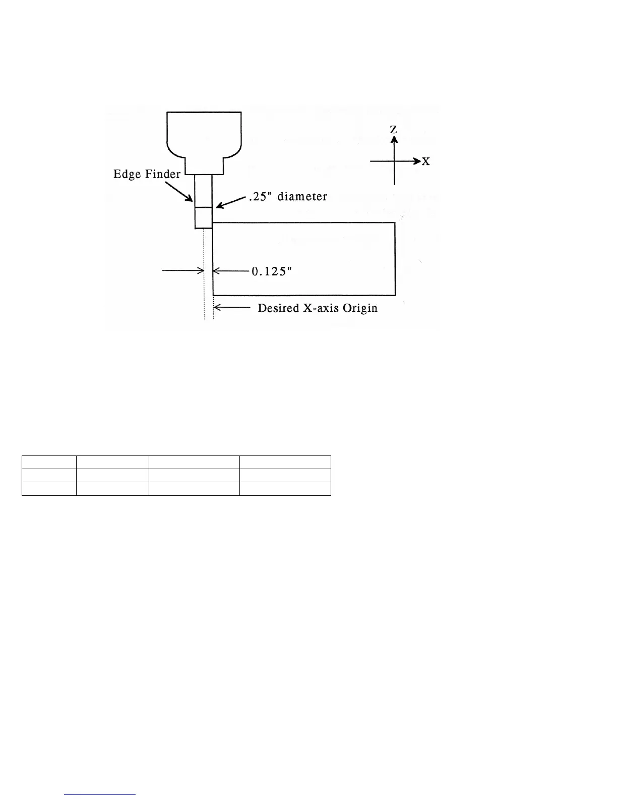 read -0.125. This means the center of the Edge Finder is sitting to the left (minus) of the part by 0.125 inches (half