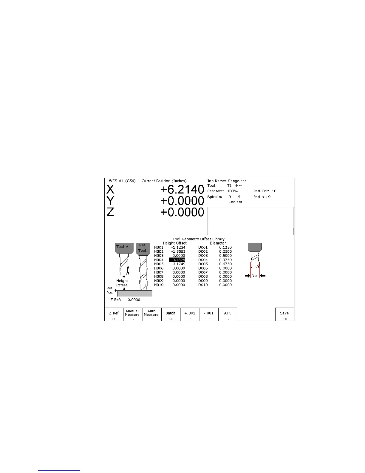 +.001 or F6 - -.001 to adjust the selected offset. If you have an automatic tool changer installed, press F7 - ATC to