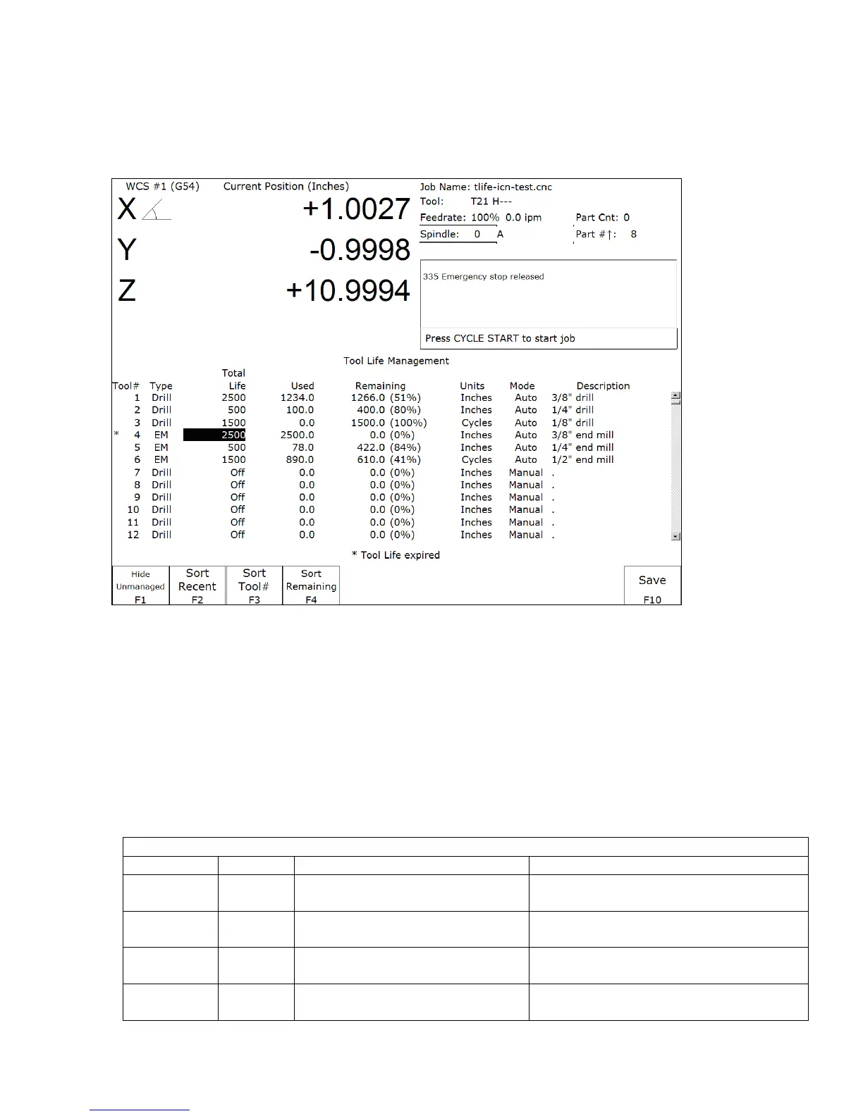 (from Main Screen: F1 Setup ► F2 Tool ► F1 Tool Life)