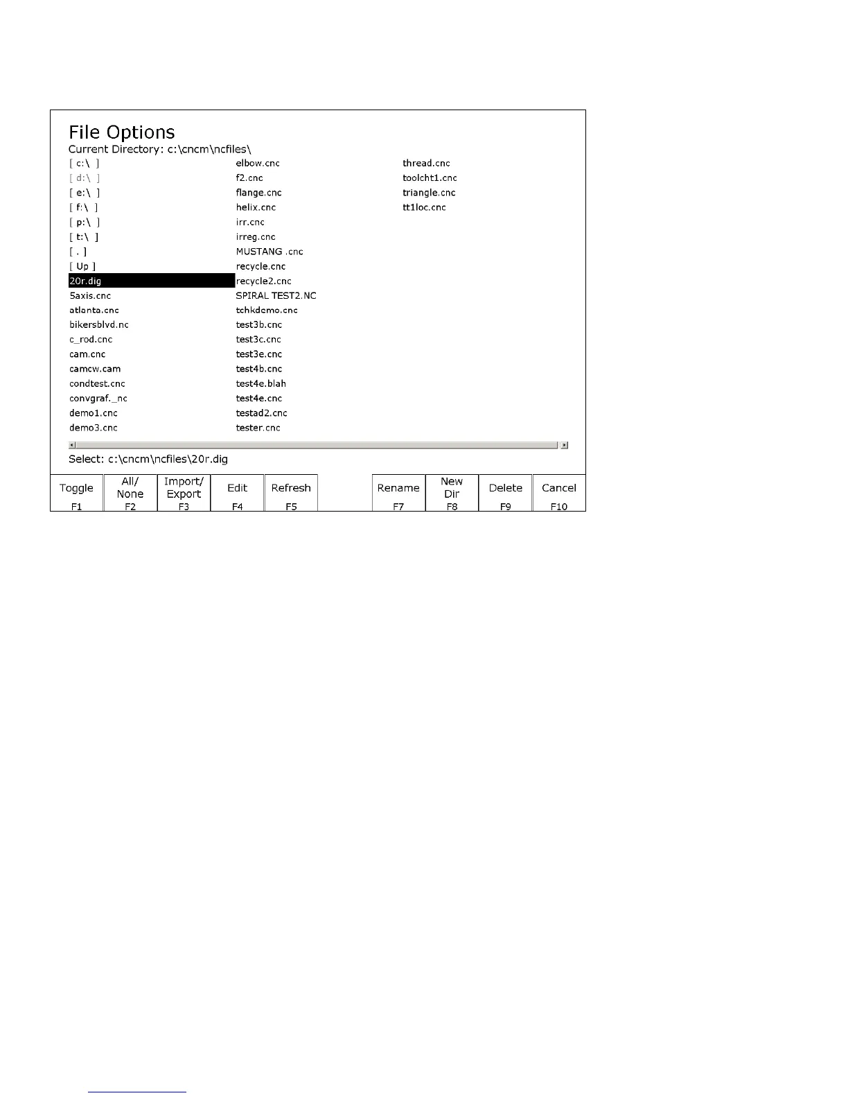F5 – File Ops Use this menu to perform file and directory operations such as: Importing and Exporting