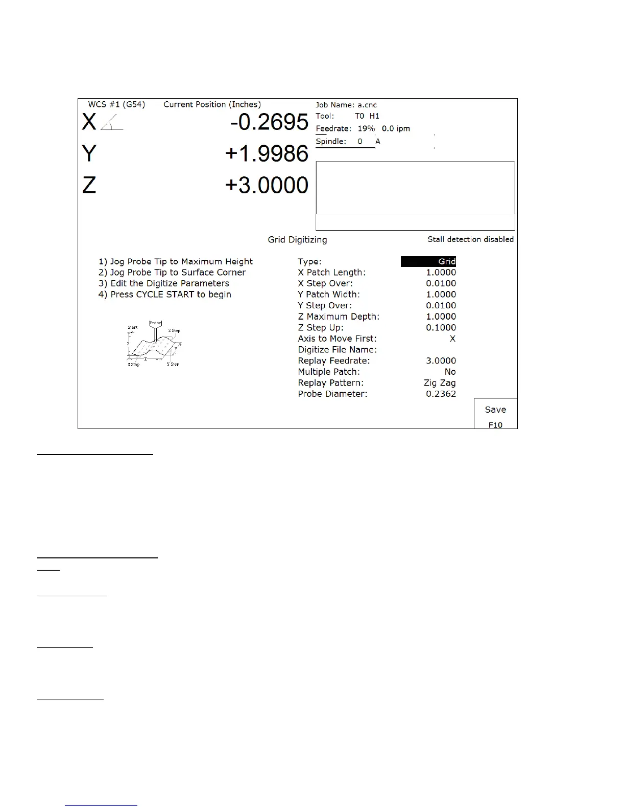 To set up a digitizing run, edit the parameters shown and then press CYCLE START. The control will move