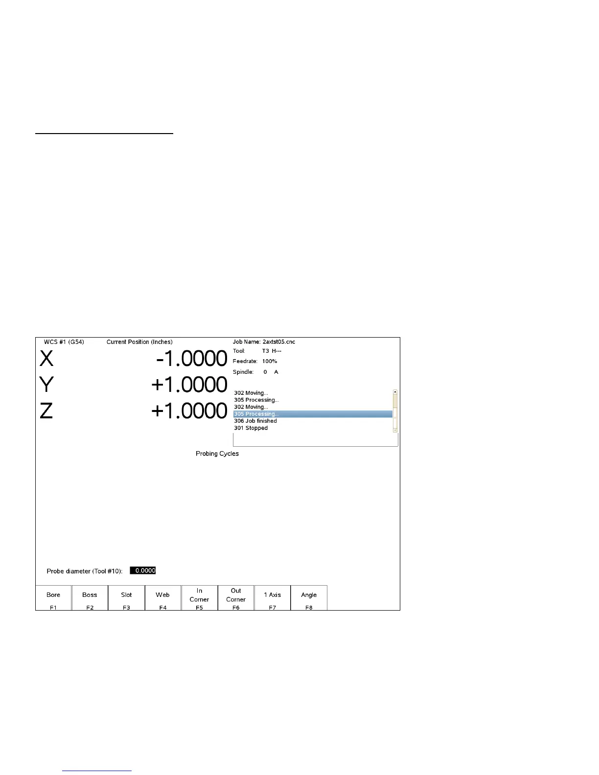 To enter the Probing Cycles screen, press F5 - Probe from the Set Part 0/Position screen. You can locate the center