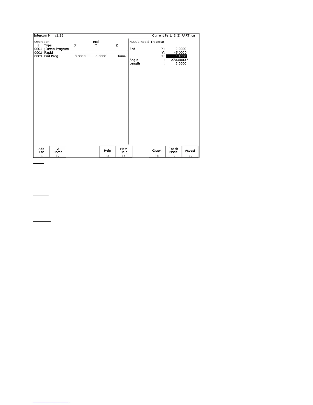 End: When you first access the rapid traverse screen, the cursor will be highlighting the first field, End X. This is the