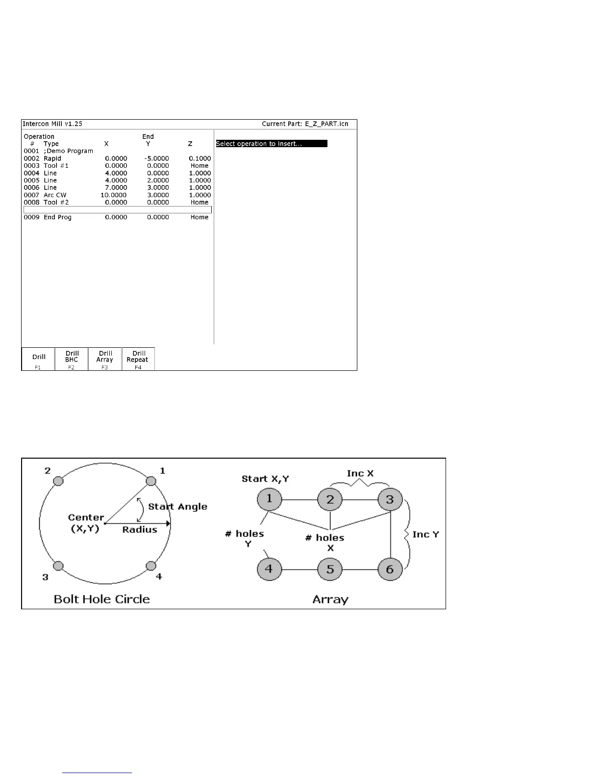 more than one hole in a pattern dictated by the new fields in the menu. F4 - Drill Repeat allows the user to repeat a