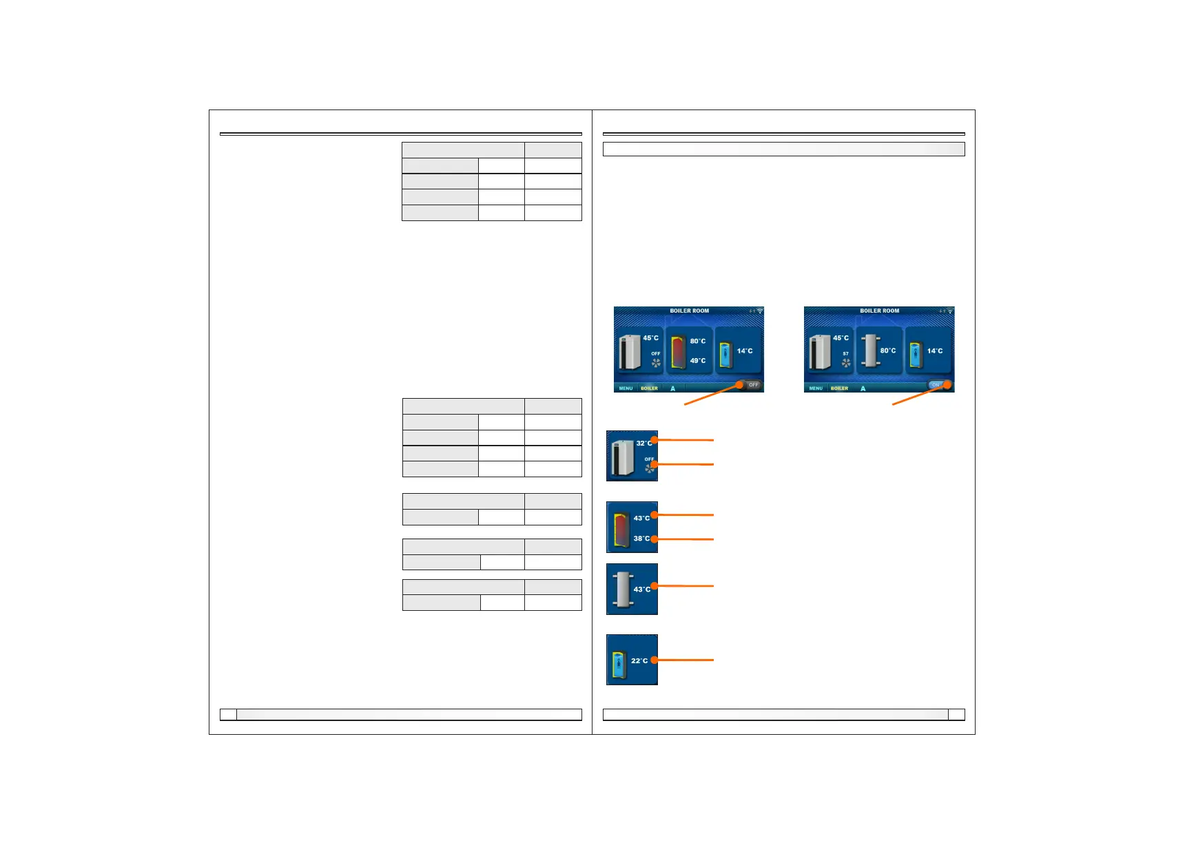 In the Boiler menu it is possible to monitor the operation of the boiler and the temperature of the