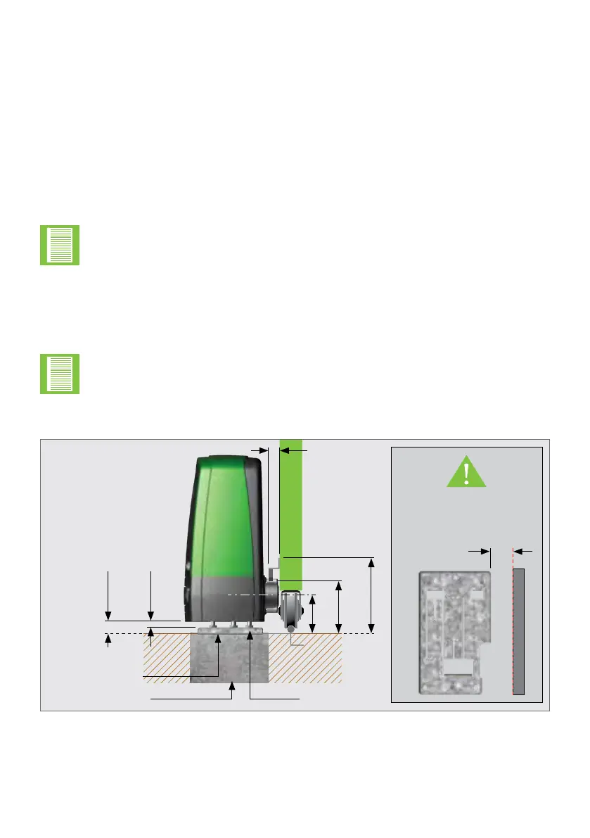 To ensure that the operator does not protrude into the driveway, install the base plate at