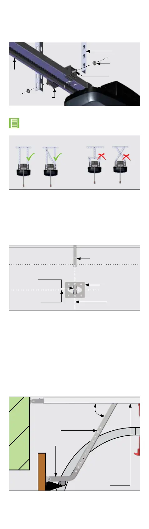 Center the towing bracket on the garage door center line and so that
