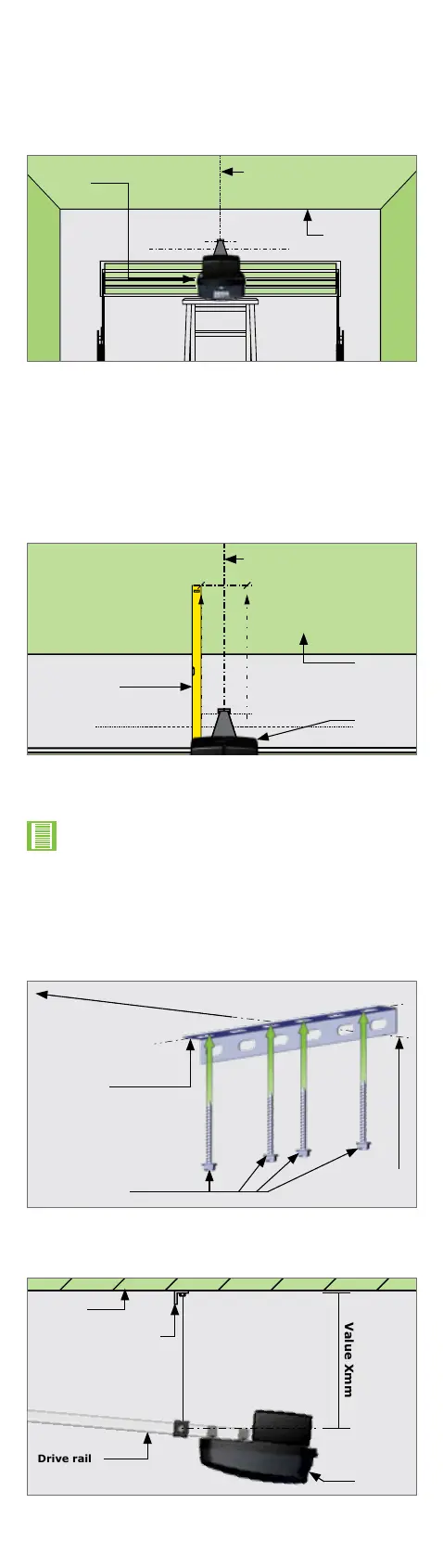 rail hanger. Make a mark on the ceiling, and repeat this for the other