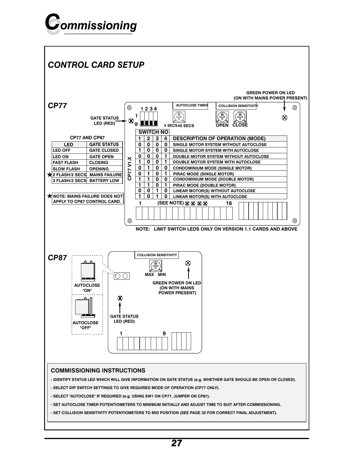 - SELECT "AUTOCLOSE" IF REQUIRED (e.g. USING SW1 ON CP77, JUMPER ON CP87).