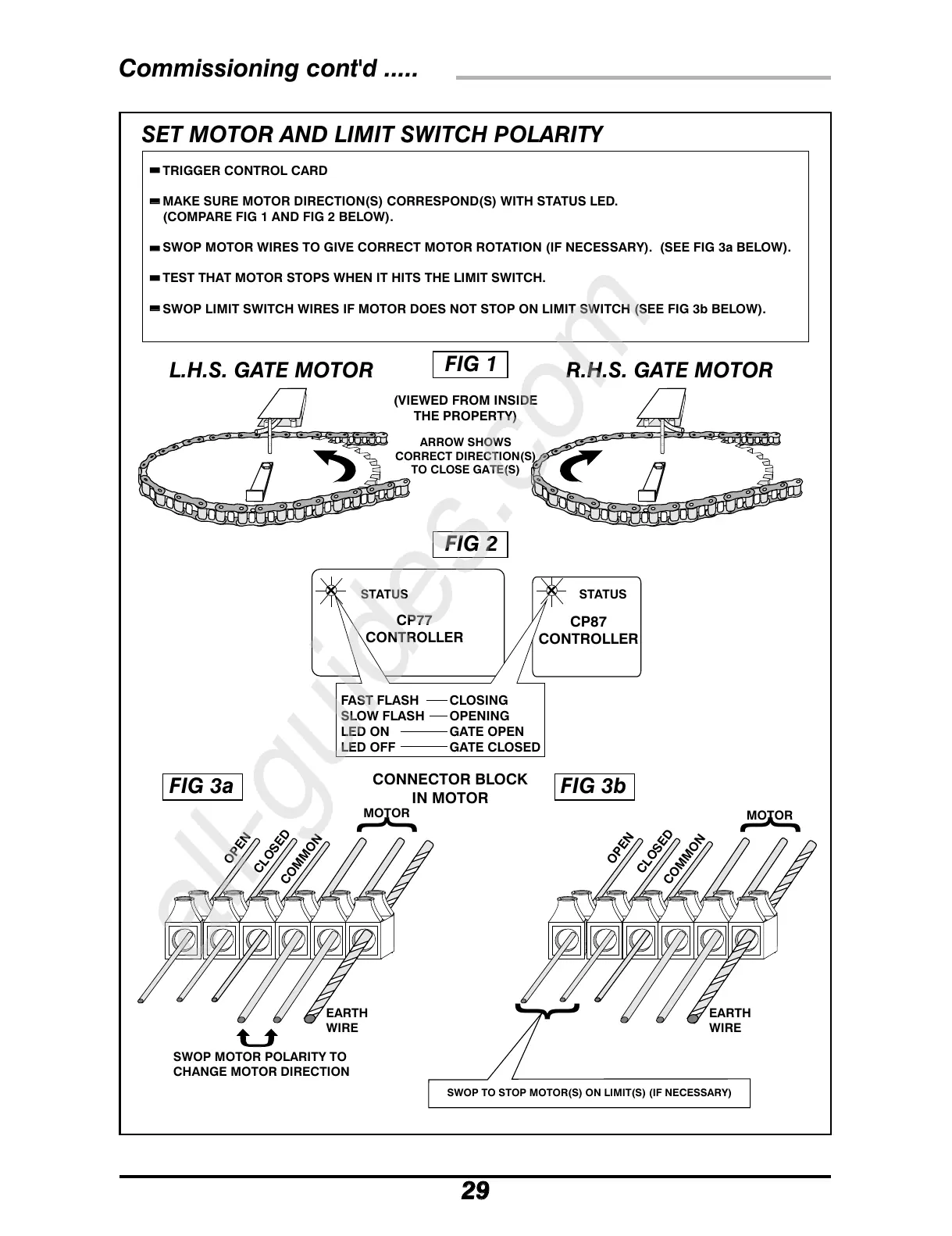 SWOP LIMIT SWITCH WIRES IF MOTOR DOES NOT STOP ON LIMIT SWITCH (SEE FIG 3b BELOW).