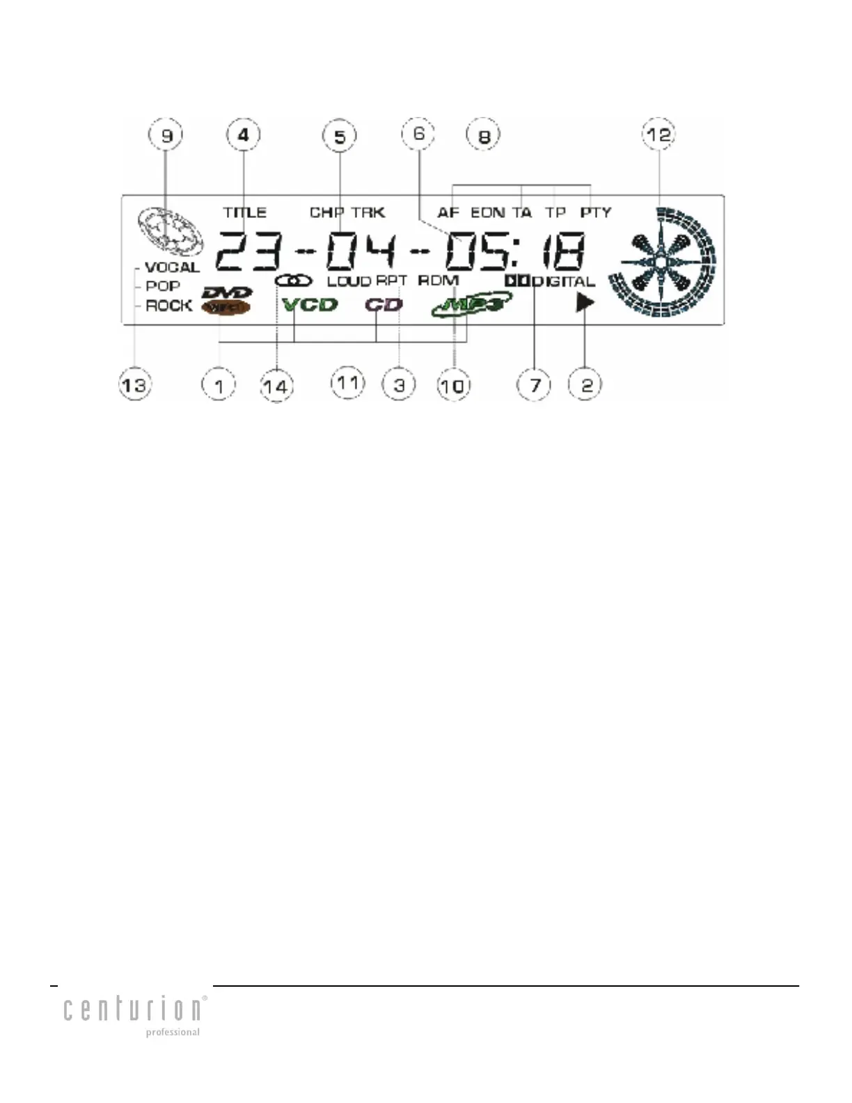 6. Disc playing time indicator for DVD/VCD, track time indicator for CD/MP3.