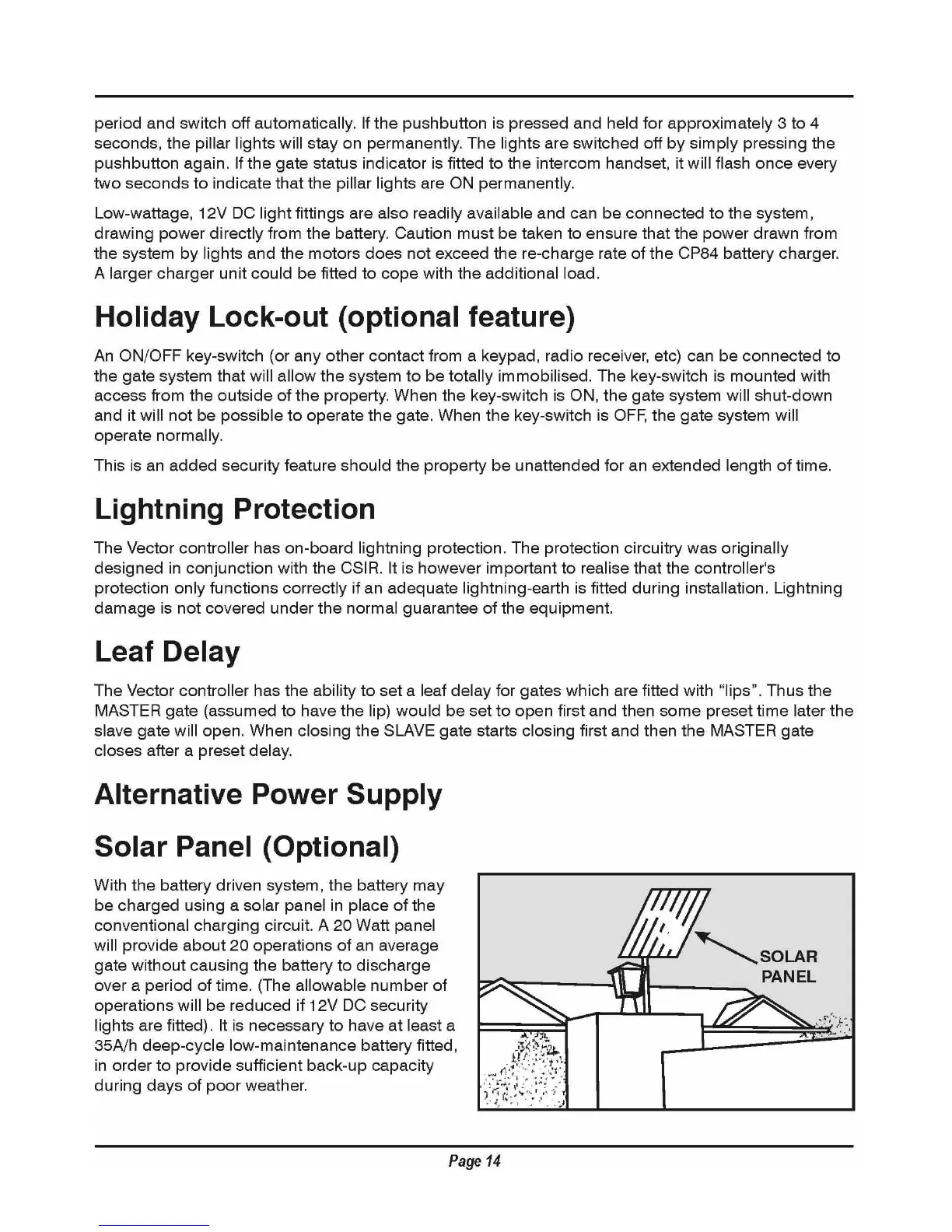 Centurion Vector - Holiday Lock-out Feature; Lightning Protection; Leaf Delay Setting; Alternative Power Supply Options