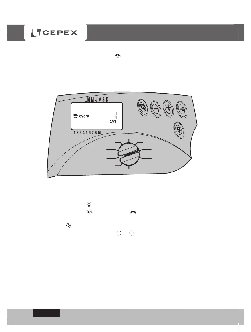 • Appuyer sur la touche jusqu’à ce que le symbole apparaisse avec JOURS 1,