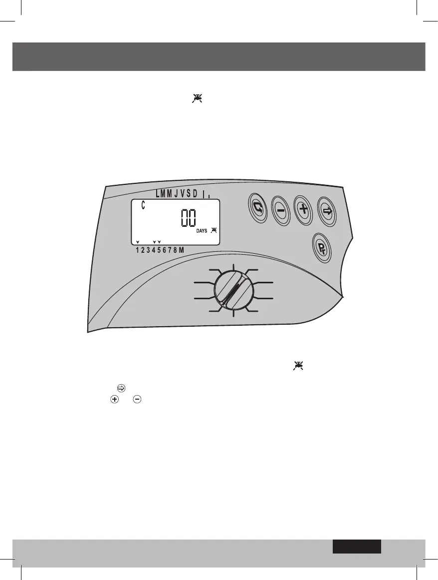 • Appuyer sur . Jours oo clignotera. Régler le nombre requis de jours de coupure