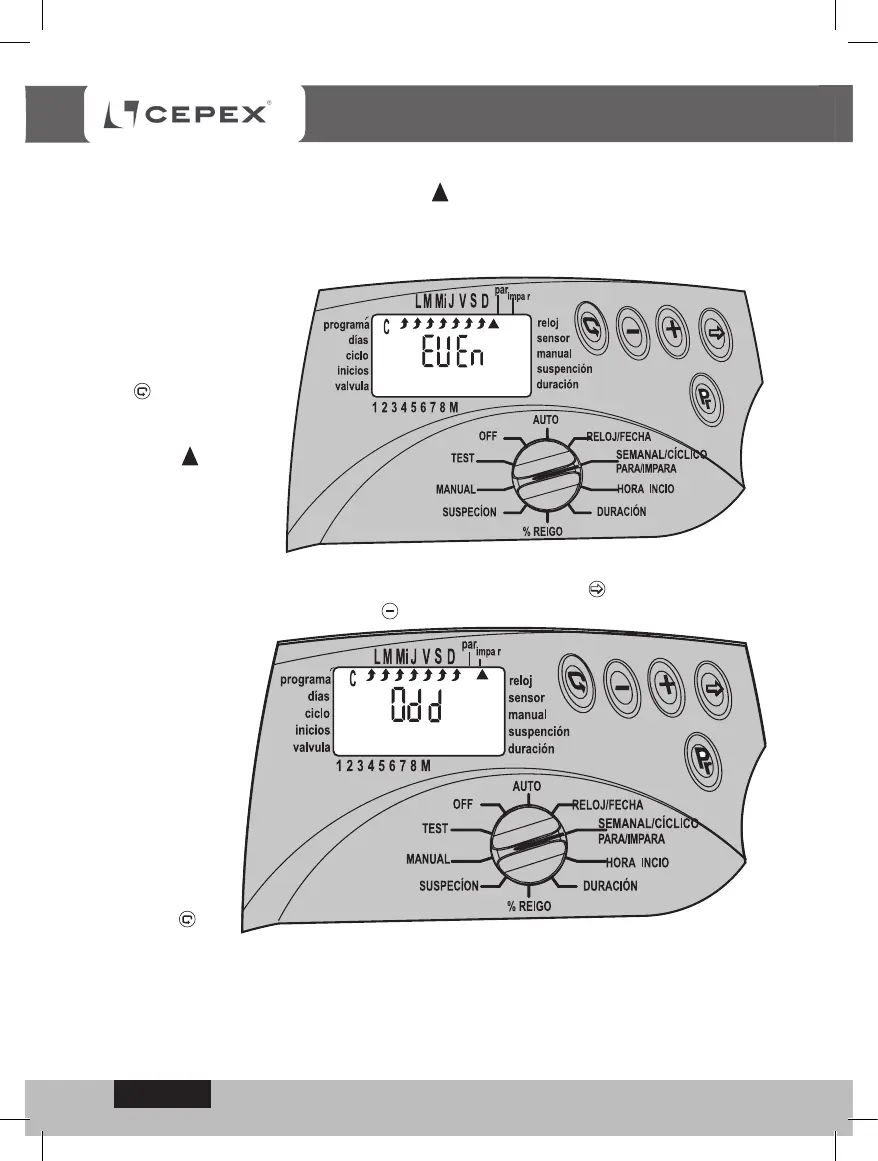 • Para cancelar determinados días de riego de la semana, pulse . La echa