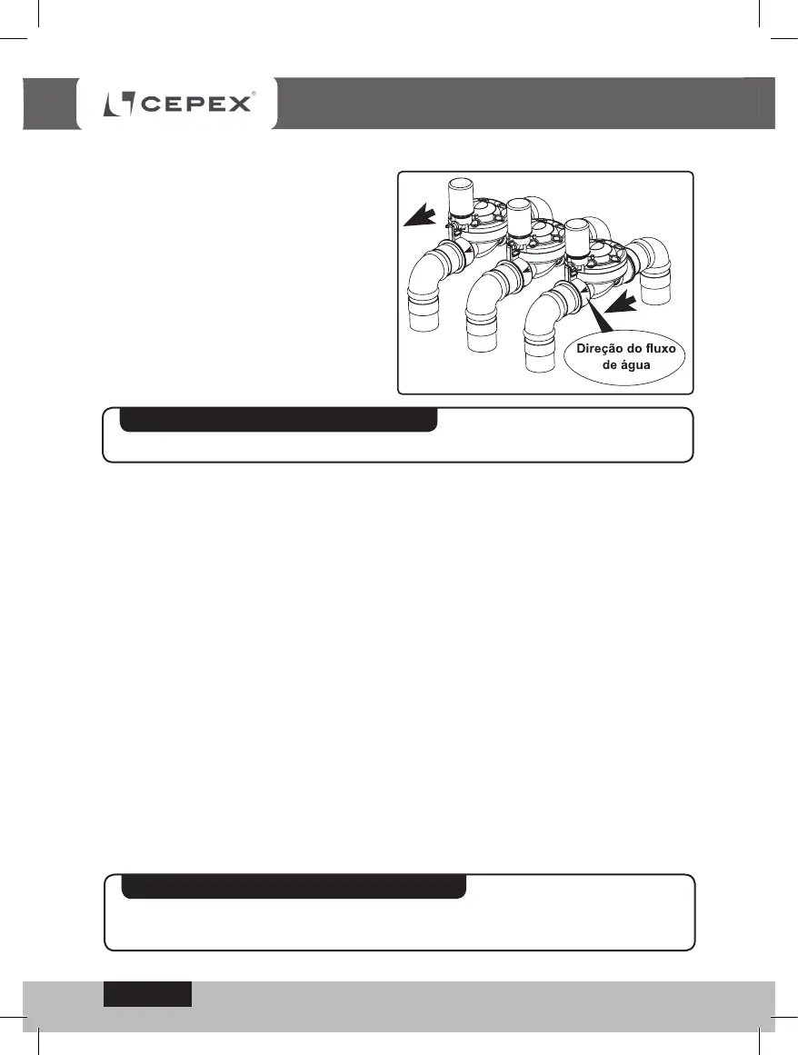 Preste atenção à direção do uxo de água indicada pela seta na válvula.