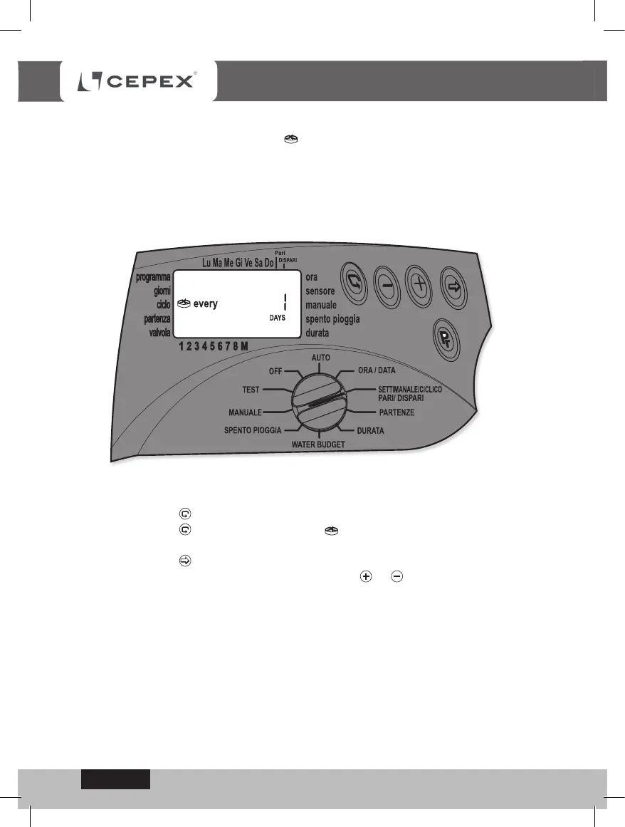 • Premereiltasto esceglierelamodalitàd’irrigazioneCICLICA.