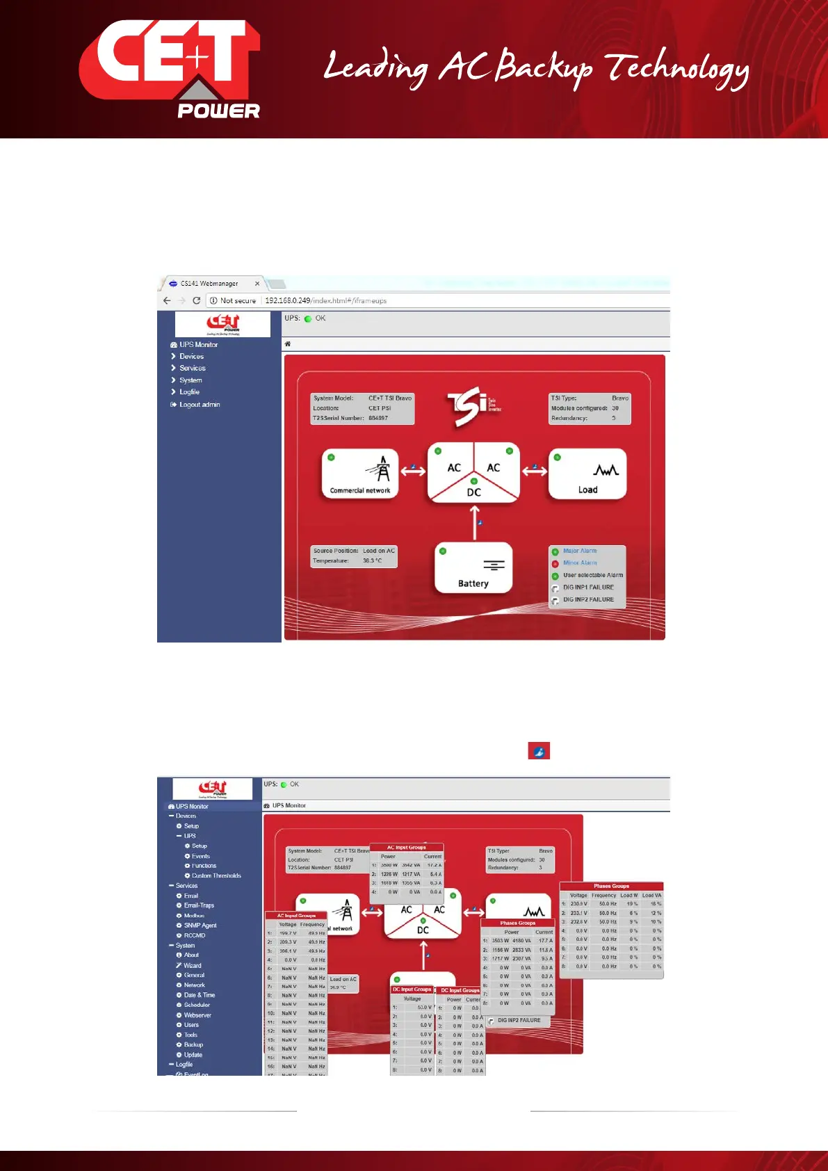 3. By clicking on the followings boxes “Commercial network”, “Battery” , “Load” and the information screens appear.