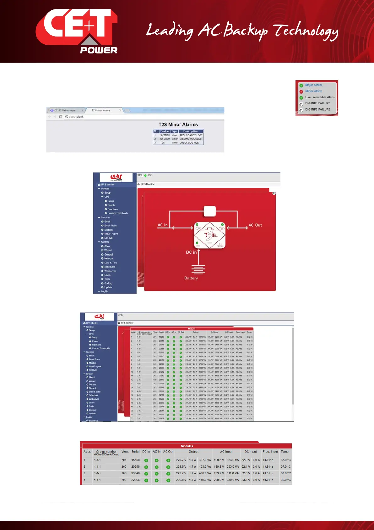 A click on the Major or Minor alarm line will provide the corresponding alarm in a new page.