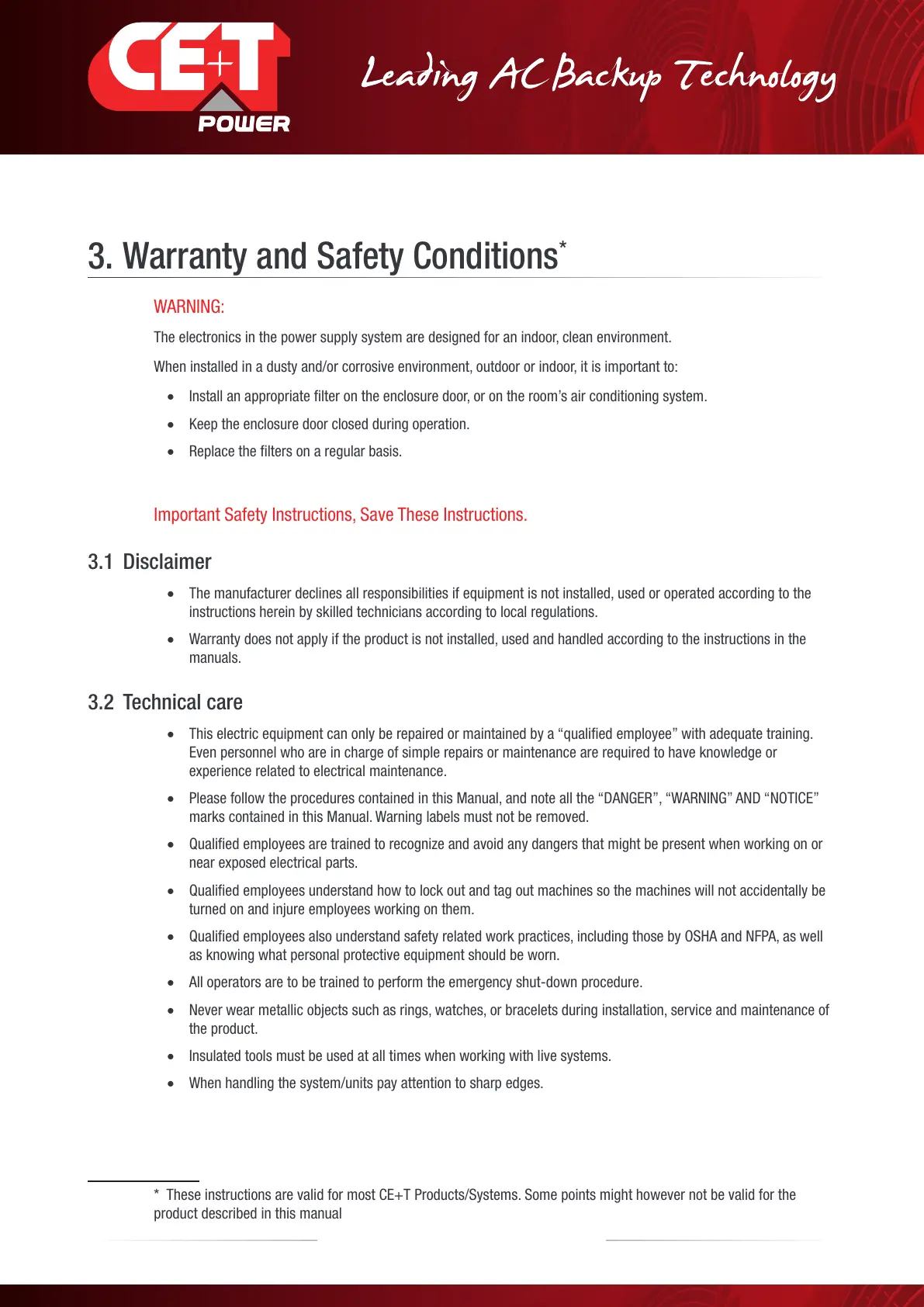* These instructions are valid for most CE+T Products/Systems. Some points might however not be valid for the