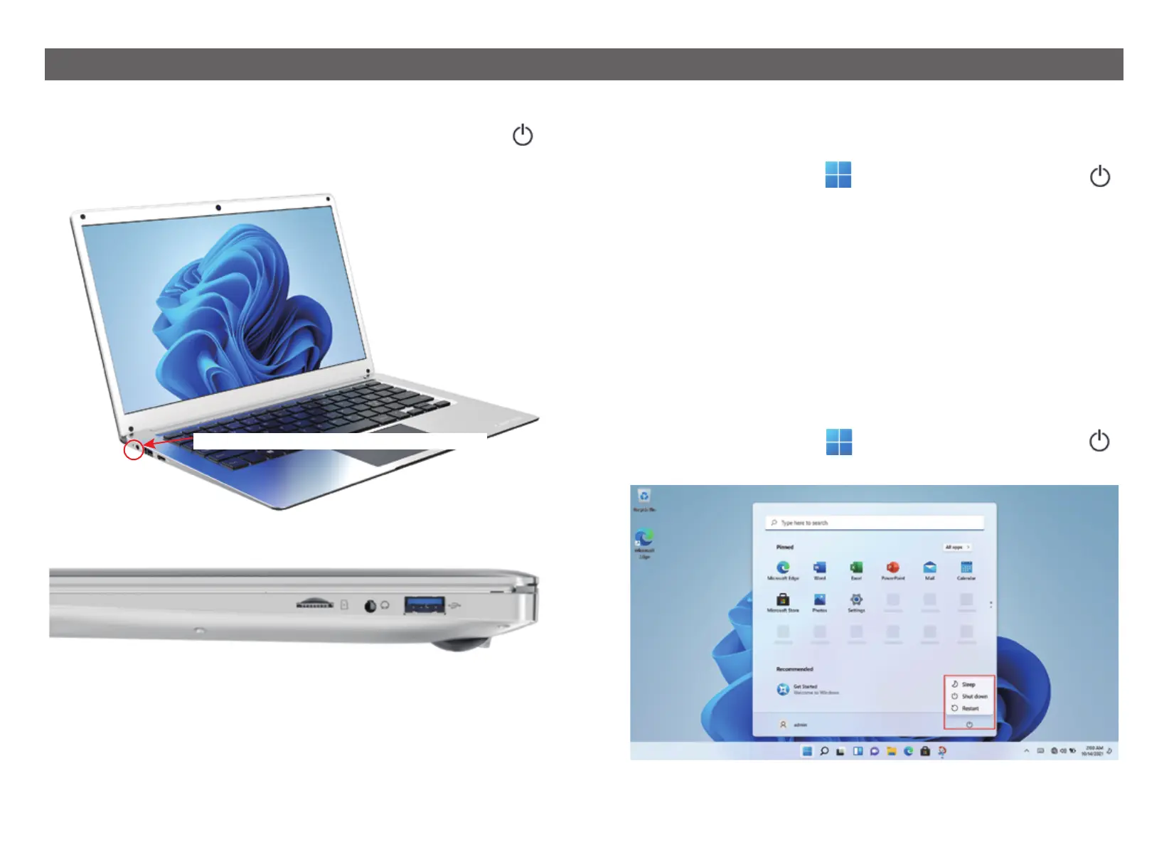 Click [Start] on the taskbar graphic,Then click [Power supply]