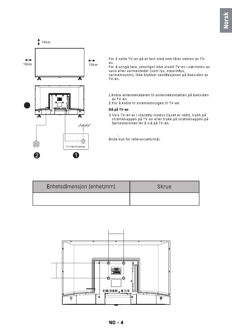 OBS: Lengden på den angitte skruen er bare en anbefaling; faktisk lengde som kreves kan variere