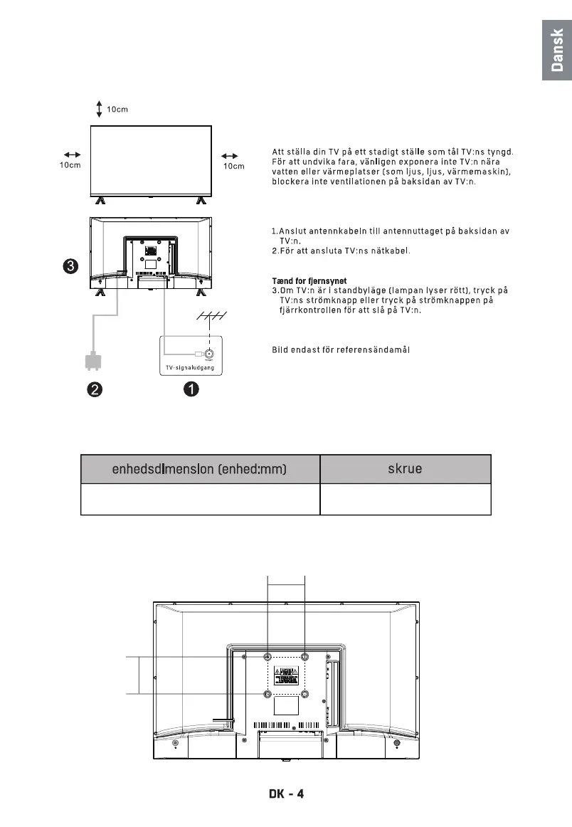 variere afhængigt af hvilken type vægbeslag der anvendes.