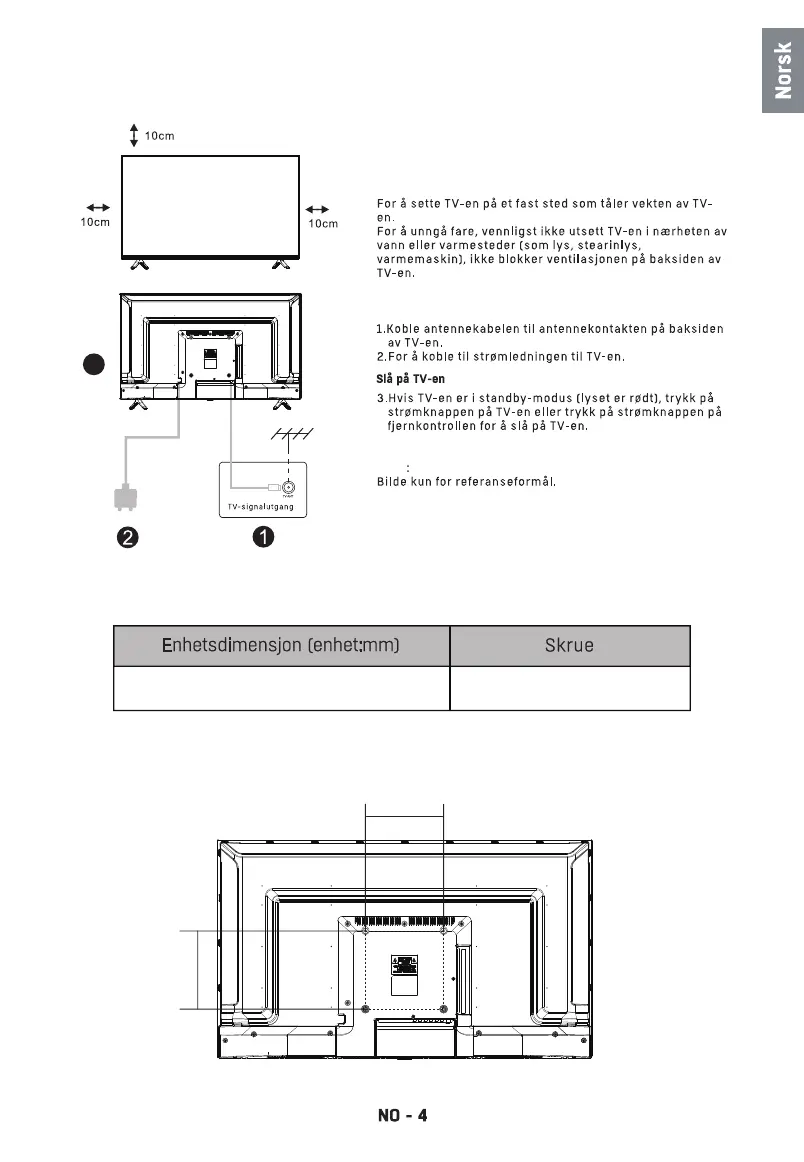 OBS: Lengden på den angitte skruen er bare en anbefaling; faktisk lengde som kreves kan variere