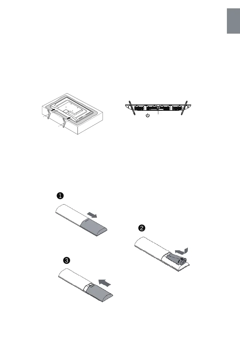 The TV is packaged with the TV stand separated from the cabinet. To setup the TV table stand, please